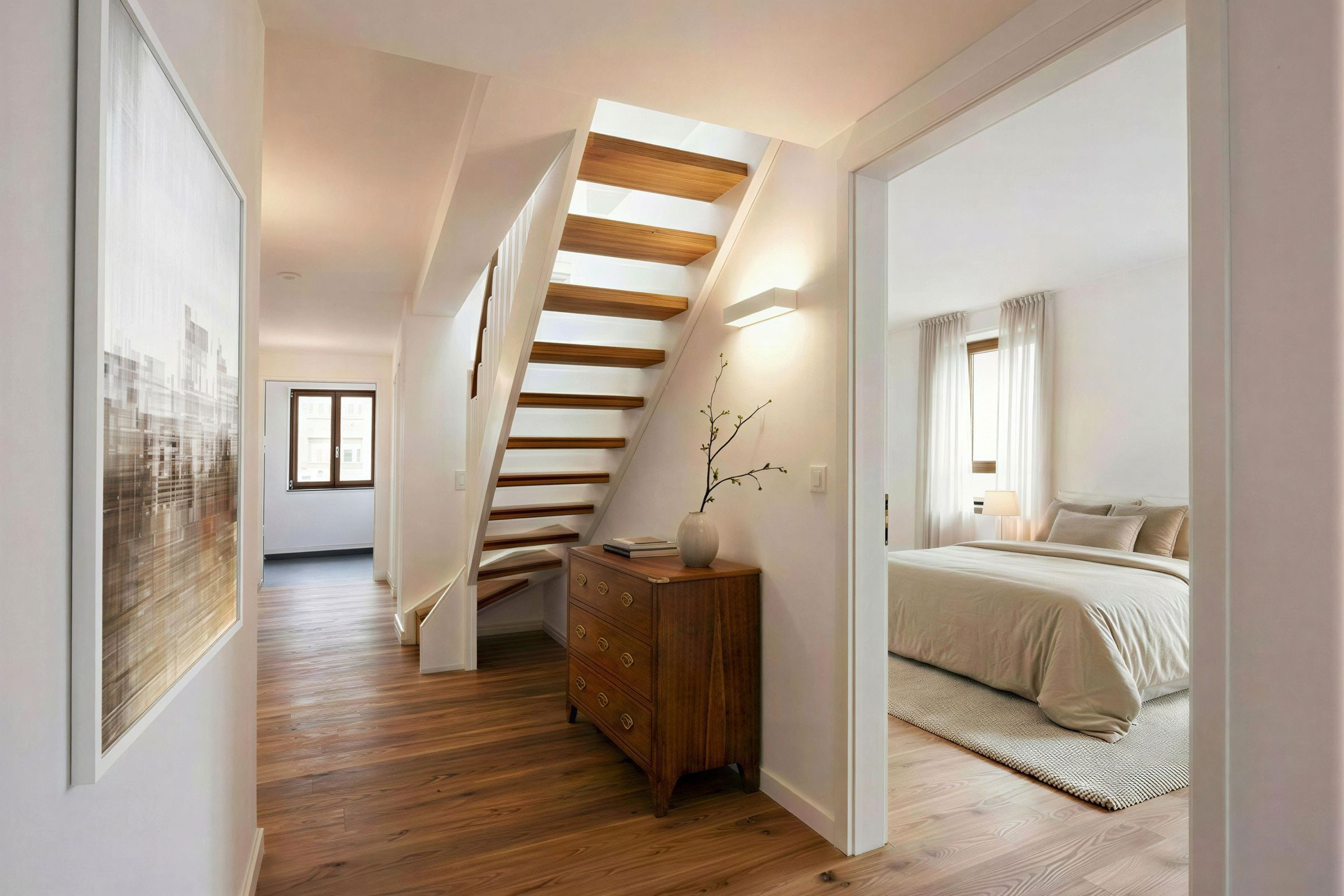 Diese kernsanierte Maisonette-Wohnung im historischen Gartenhaus verbindet architektonischen Charakter mit modernem Wohnkomfort auf rund 157 m² Wohnfläche. Die klare Raumstruktur über Ober- und Dachgeschoss schafft ein großzügiges, dennoch durchdachtes Wohnkonzept mit hoher Alltagstauglichkeit.